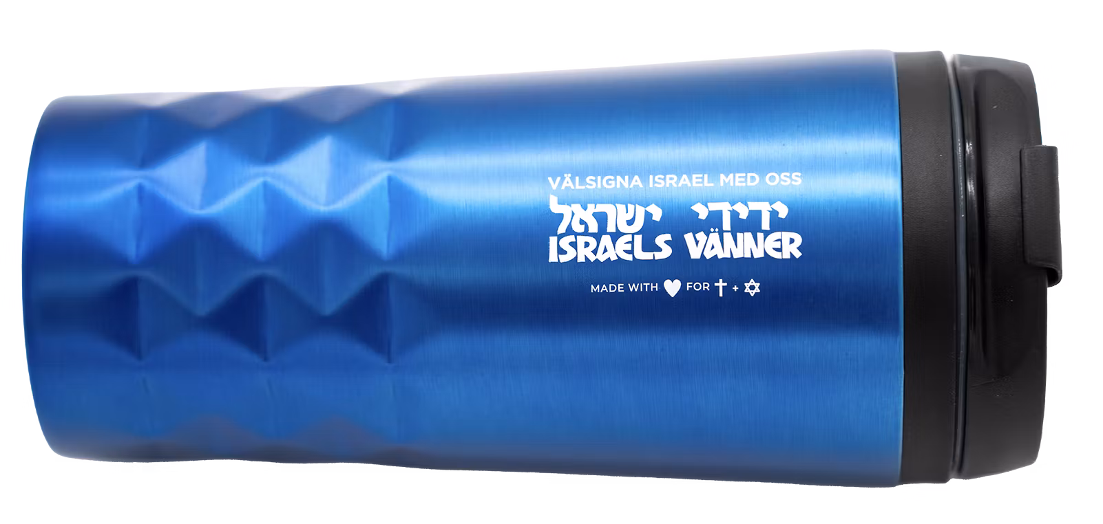 Ihop med Israels Vänners jubileumsår 2023 har vi tagit fram denna mugg som är perfekt att använda när du vill dricka varm eller kall dryck. Fin metallicblå färg. Snäpplock som du kan dricka från.